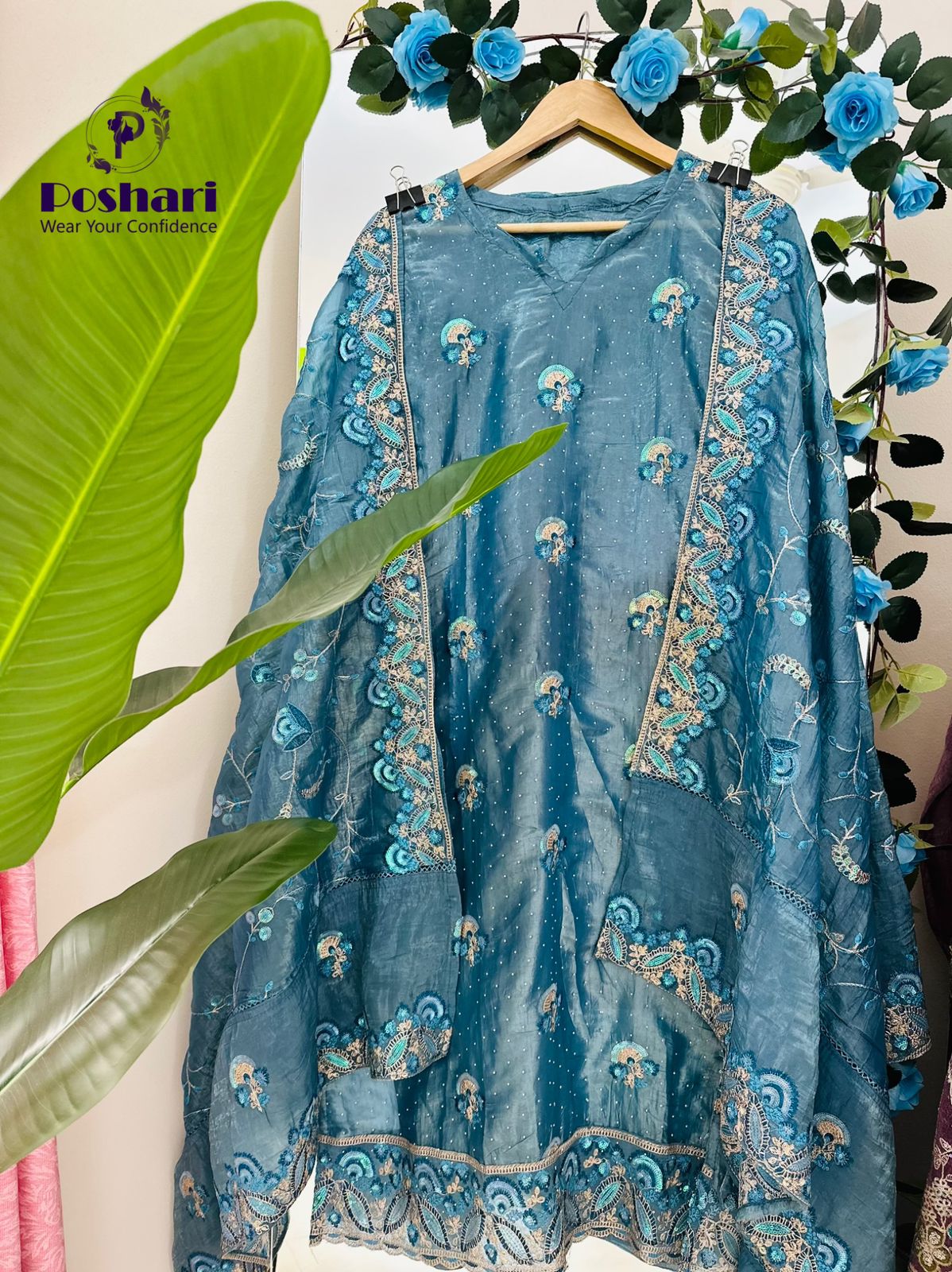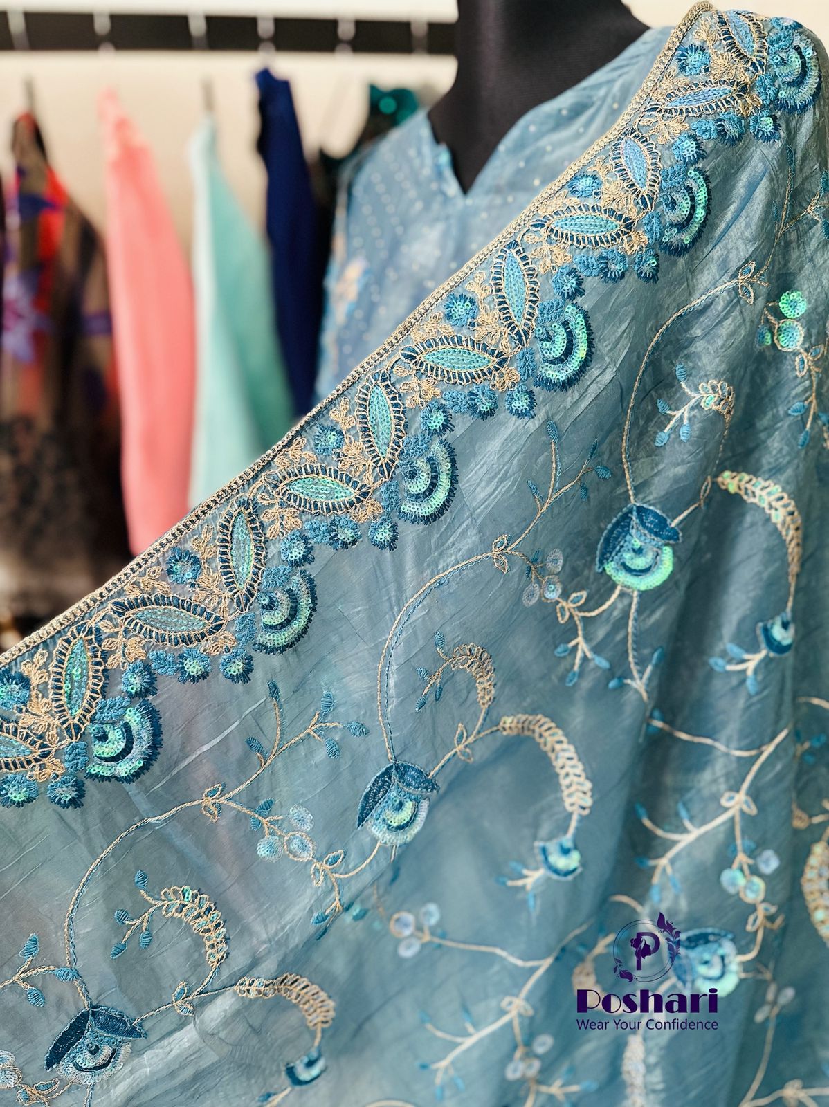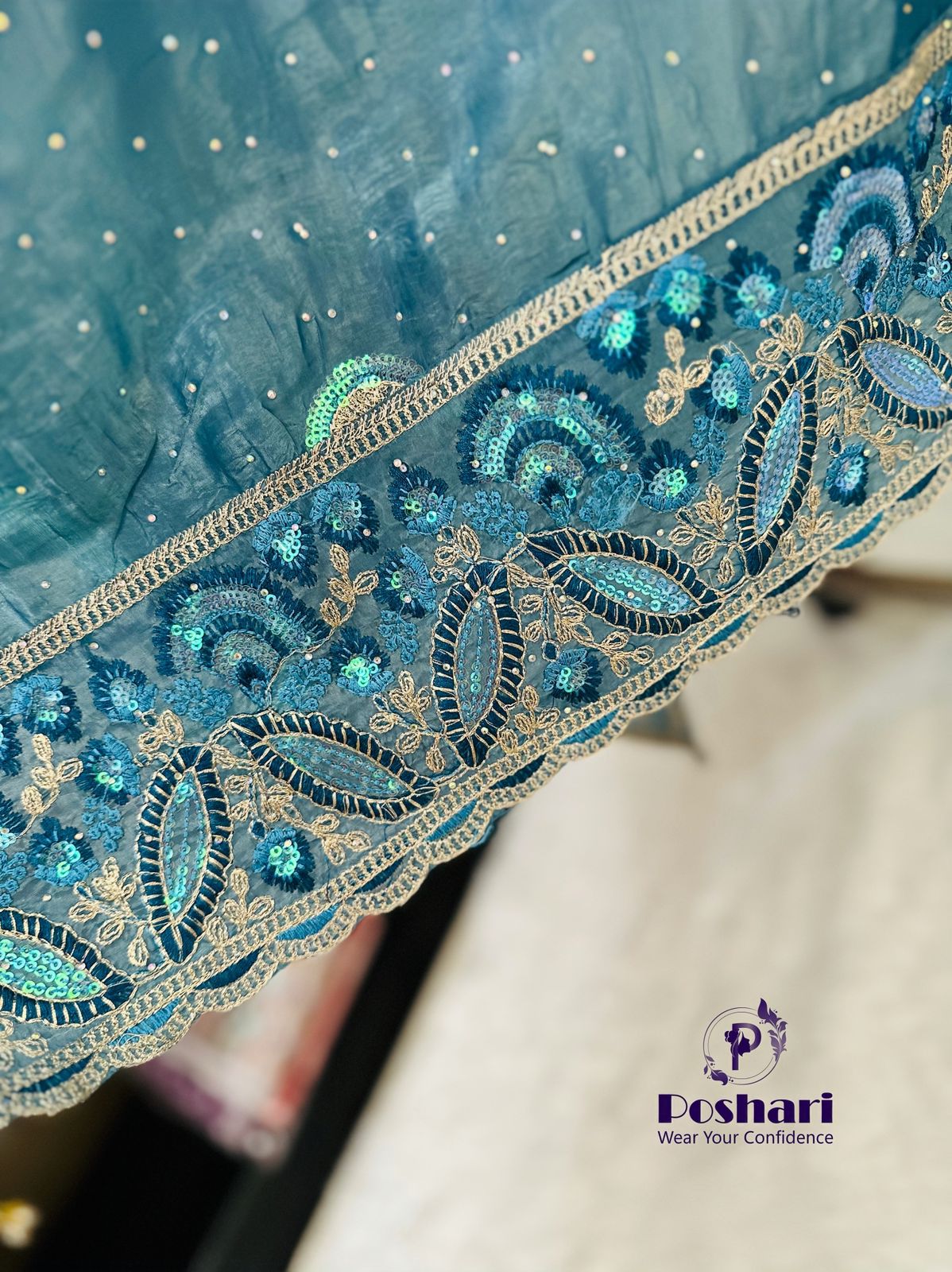 KAMIJ FABRIC-cinon jorjet fabric with embroidery and sequins work.