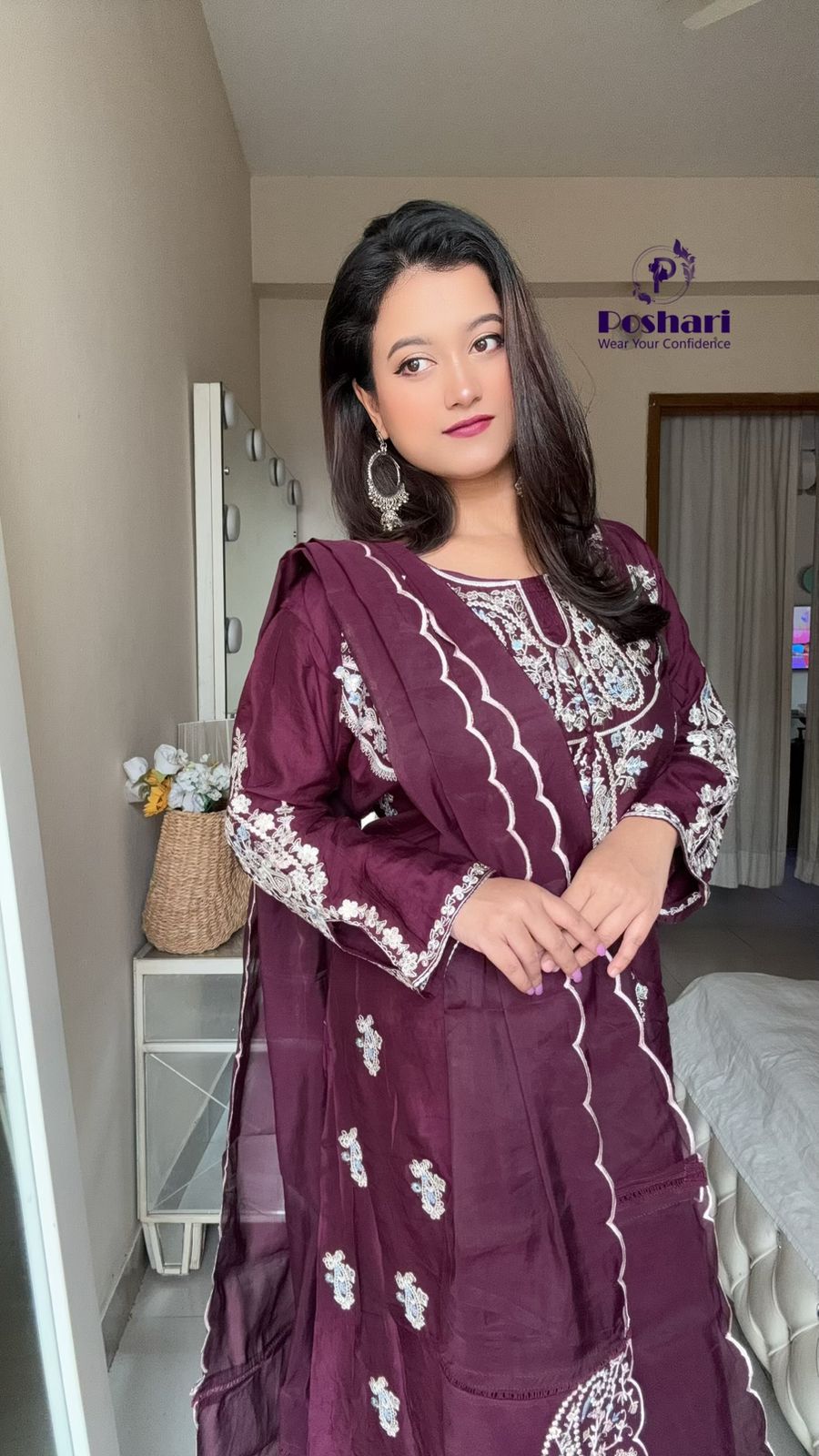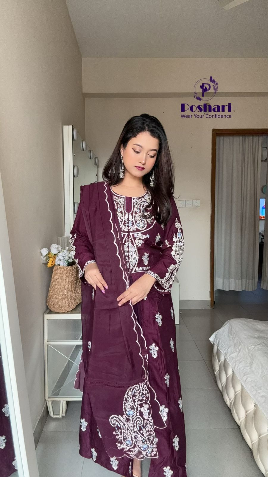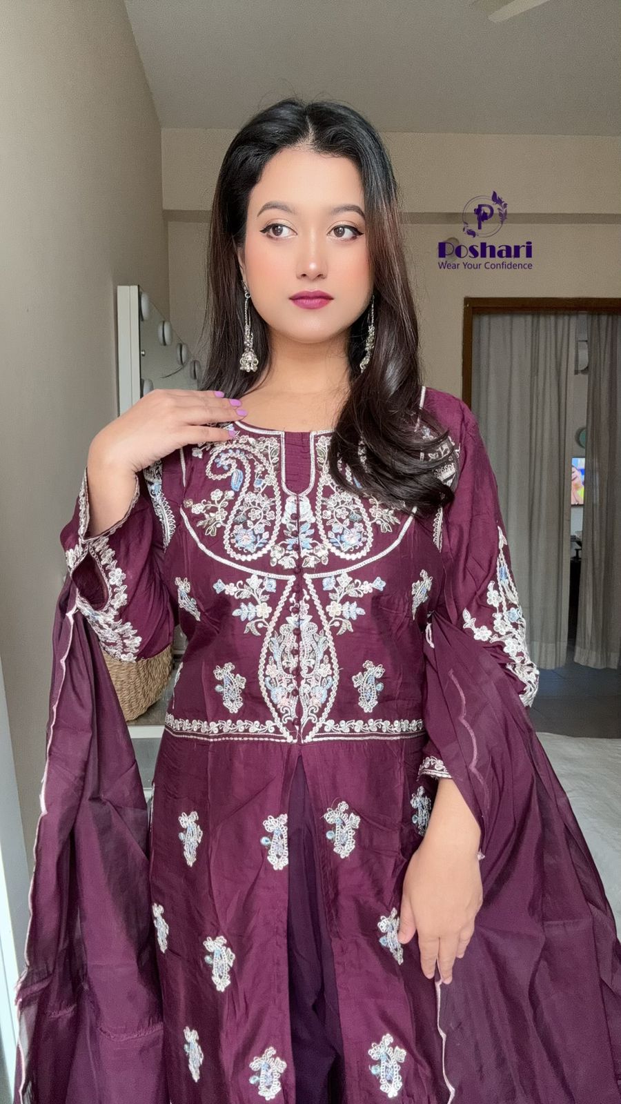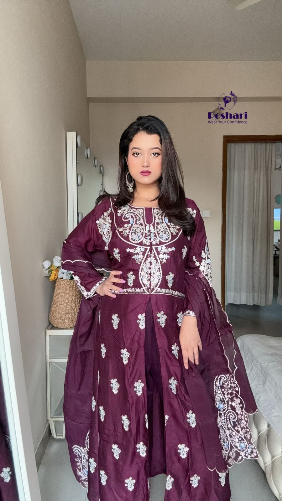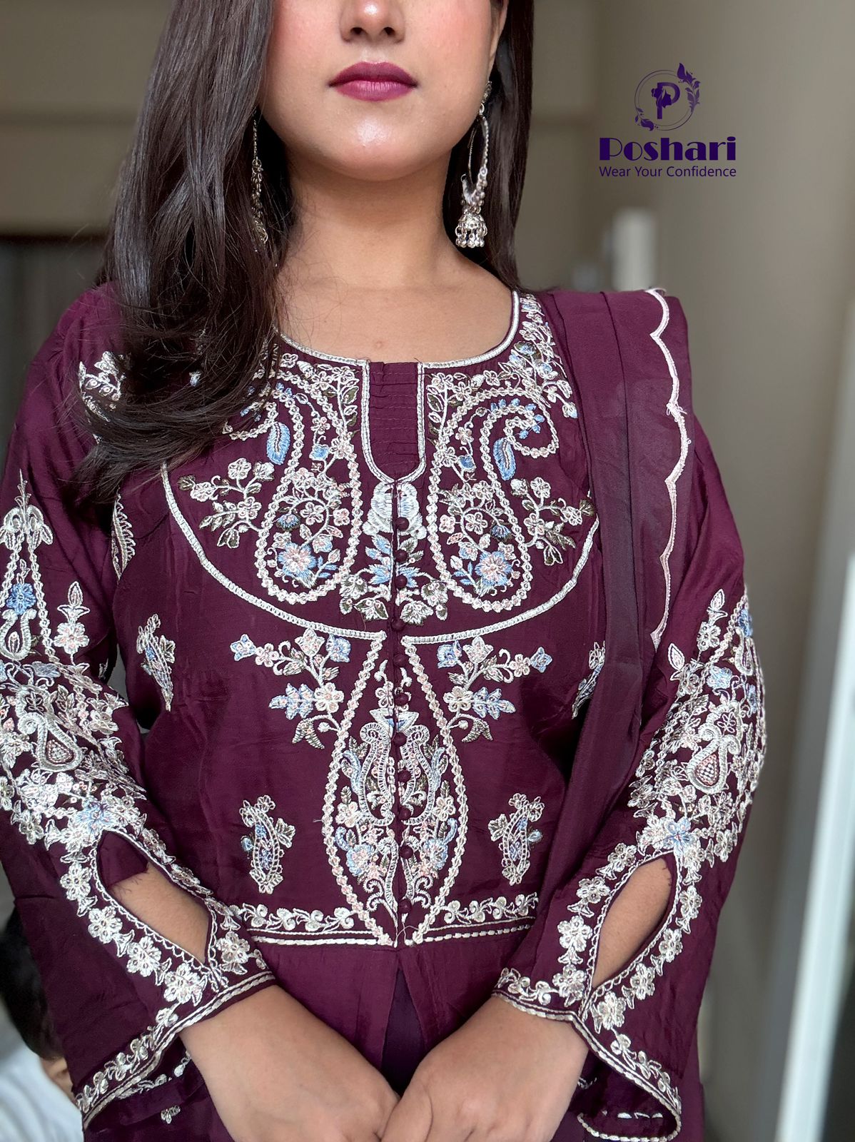 Soft organza fabric with embroidery work cut work