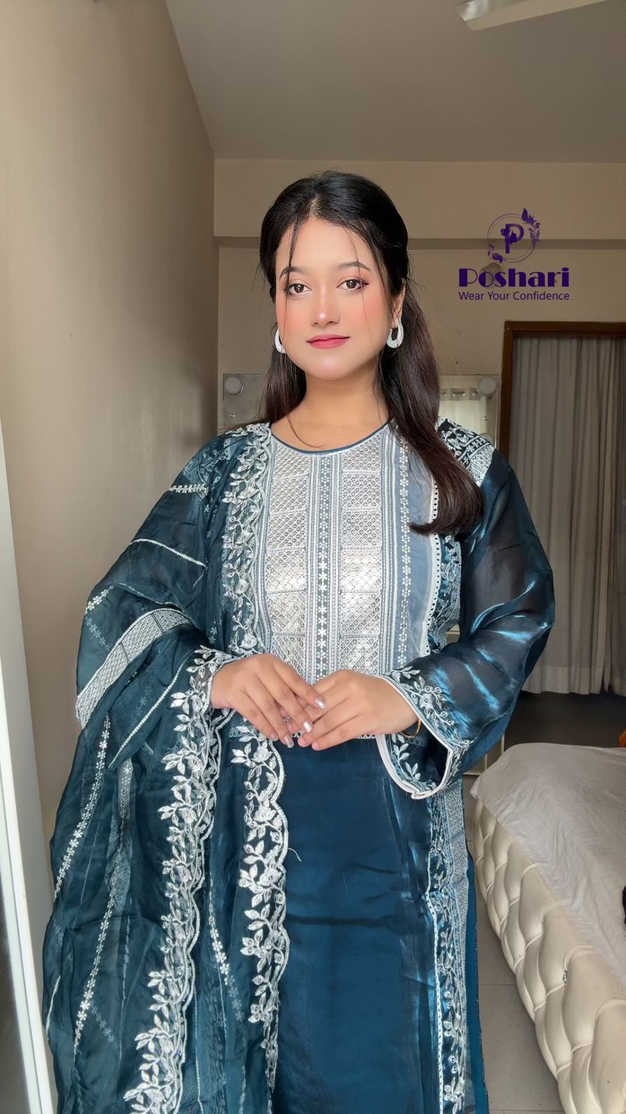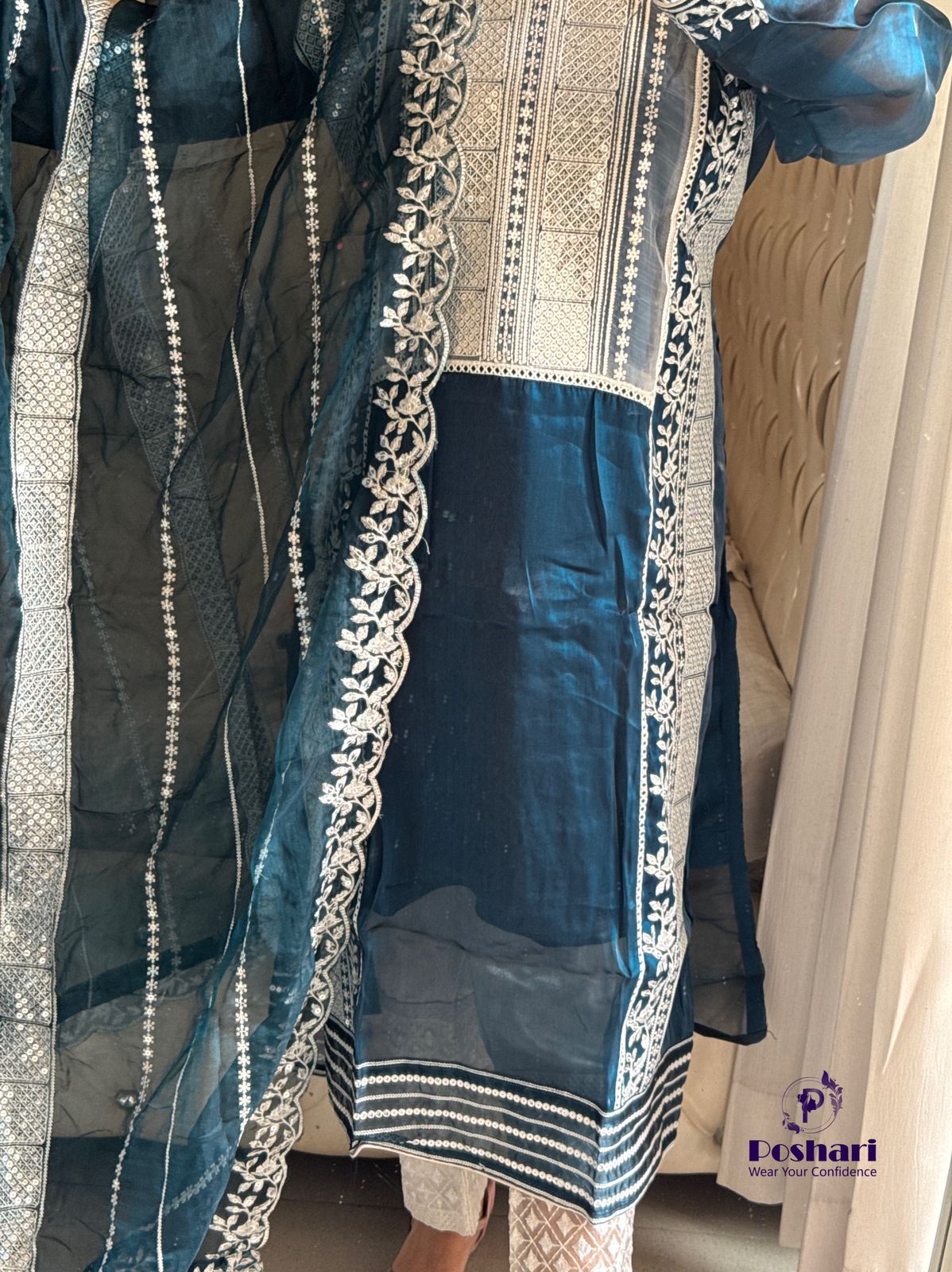 Soft organza fabric with embroidery and sequins work .