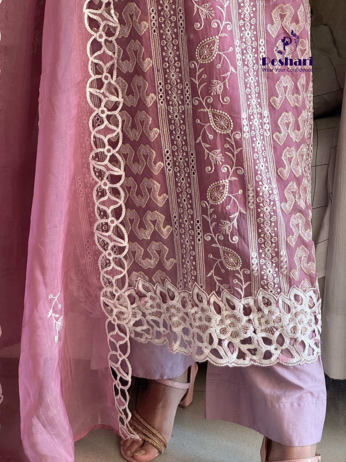 Same as dress fabric with embroidery work and cut work