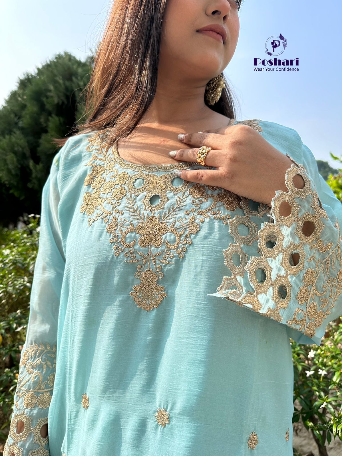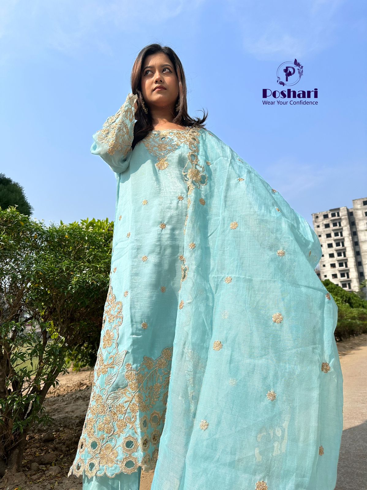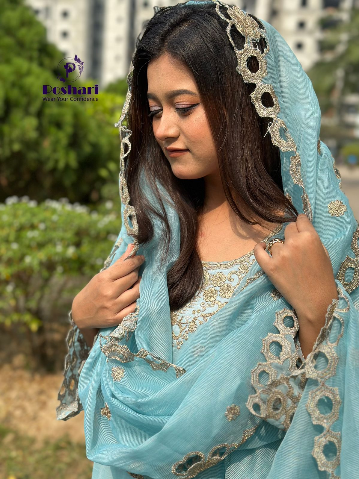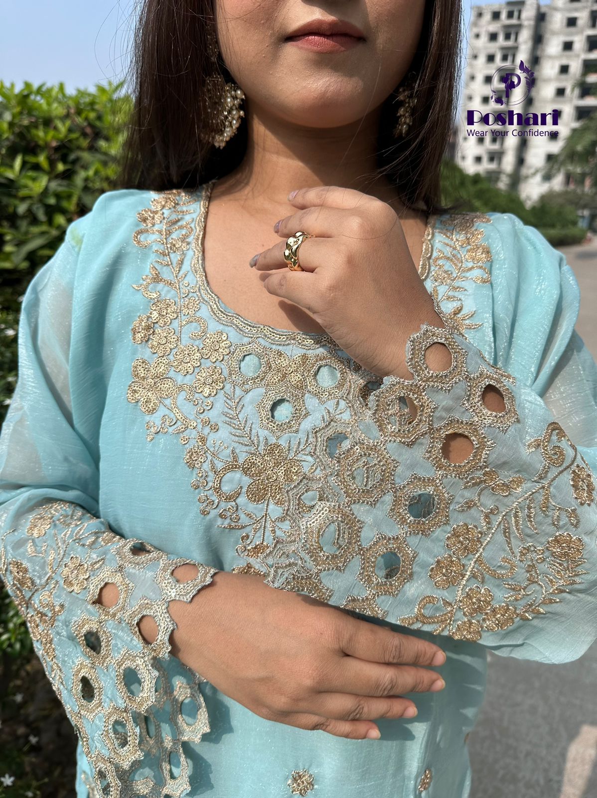 KAMIJ FABRIC-original indian sadabahar fabric with embroidery ,sequins and cut work ( 4 pc stich dress)