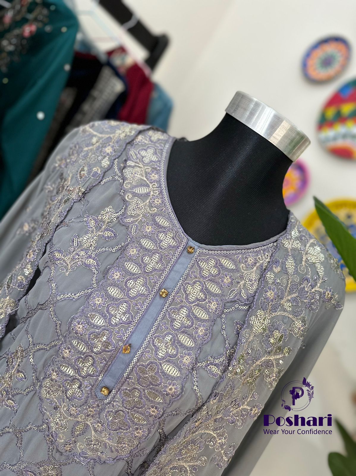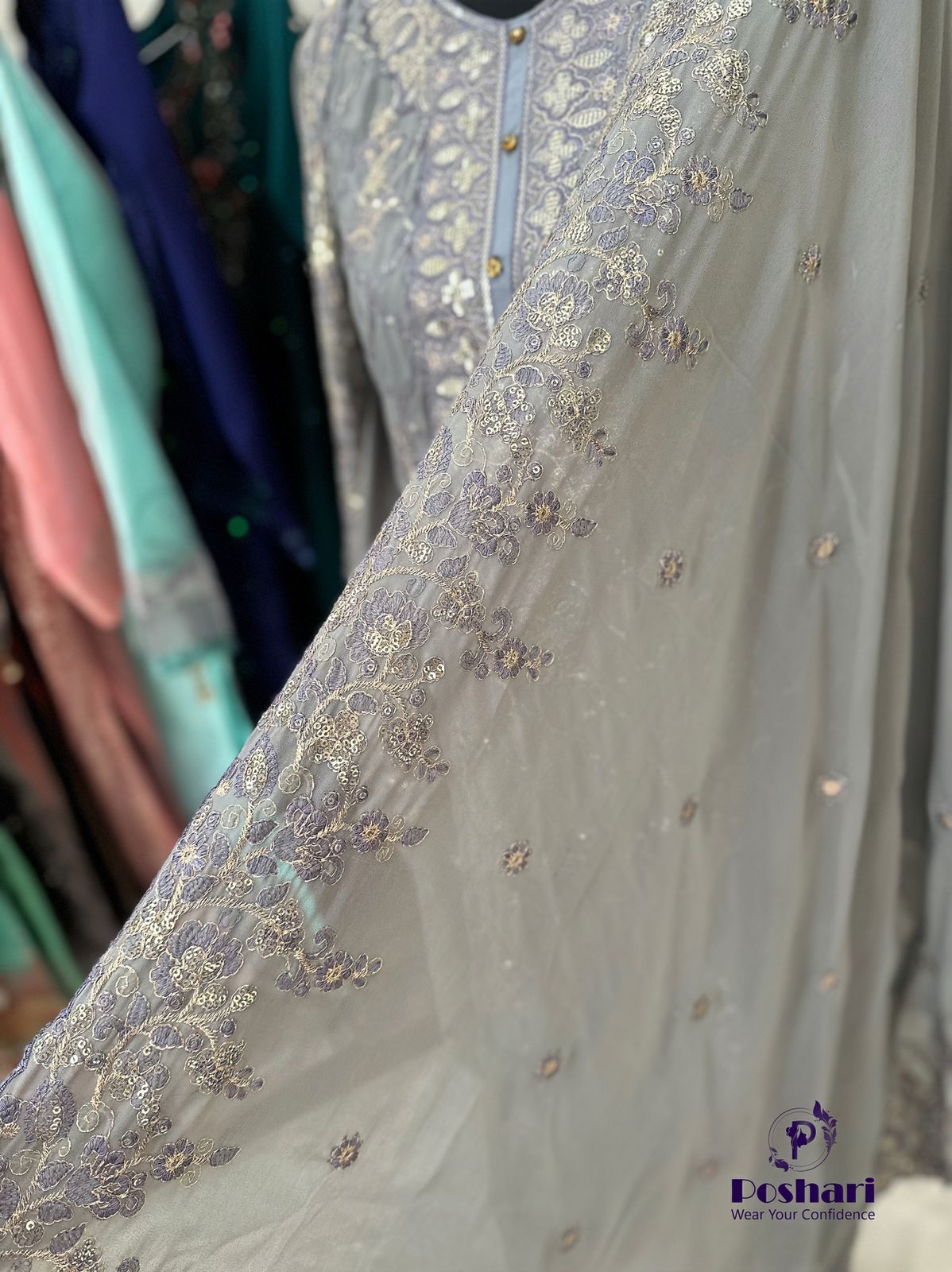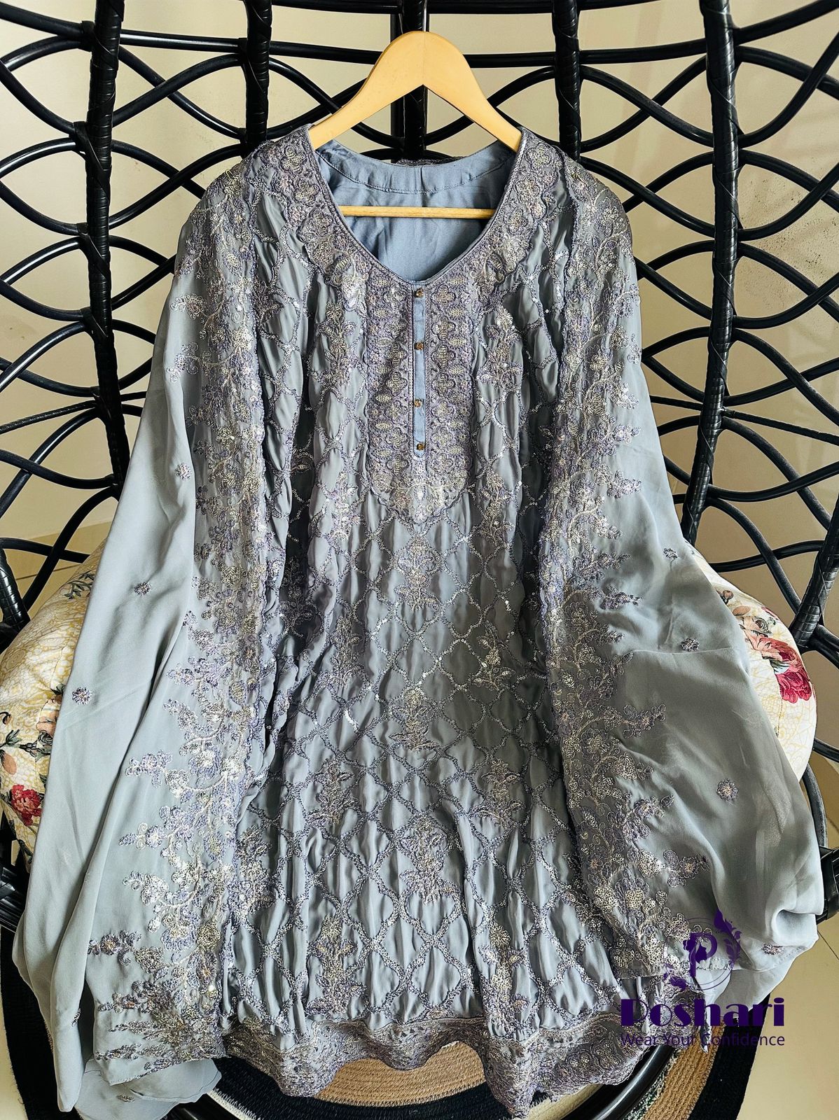 KAMIJ FABRIC-pure jorjet fabric with embroidery and sequins work.